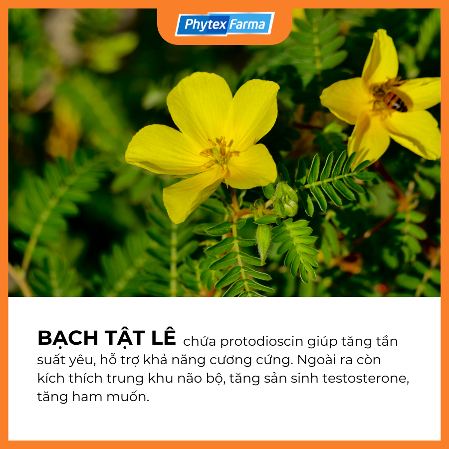 - Bạch tật lê chứa protodioscin giúp tăng tần suất yêu, hỗ trợ khả năng cương cứng. Ngoài ra còn kích thích trung khu não bộ, tăng sản sinh testosterone, tăng ham muốn
